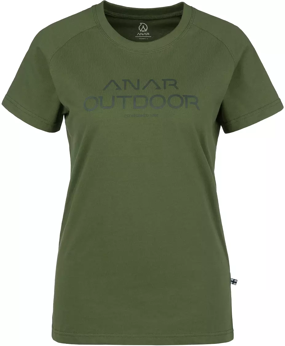 Pehmeästä luomupuuvillasta valmistettu T-paita naisellisella leikkauksella, joka on erinomainen valinta niin vapaa-aikaan kuin kesän retkille. Materiaali on joustavaa puuvillatrikoota tuntuen miellyttävältä ihoa vasten. T-paidassa on normaalimitoitus ja pyöreä pääntie. Etupuolella on Anar -printti. T-paidasta on saatavilla useita eri värejä, jotka sopivat hyvin yhteen Anarin vaellushousujen kanssa.