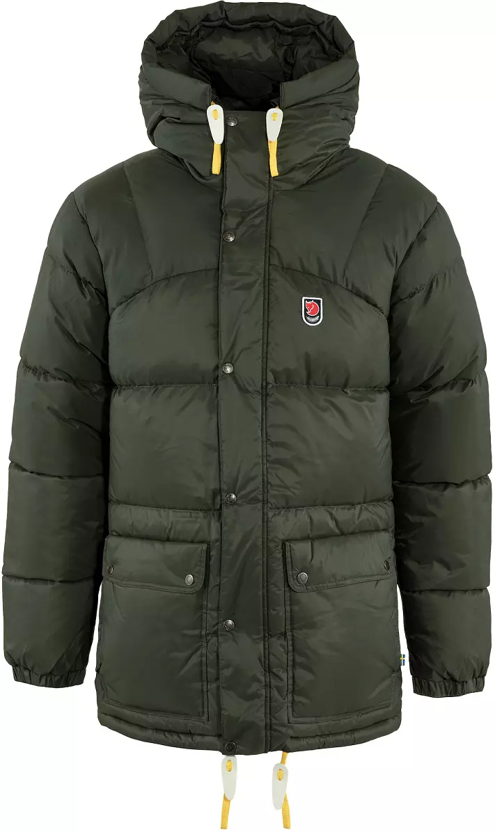 Expedition Down - on pitkä ja hyvin eristetty untuvatakki todella kylmää talvisäätä varten. Rakastettu Fjällräven-klassikko vuodelta 1974, nyt päivitettynä versiona miehille. Lämmin huppu ja reilut taskut. Taskuissa on aukot myös sivuilla käsien lämmittelyä varten. Eristeenä laadukas ja eettisesti tuotettu untuva. Kaksi erillistä untuvakerrosta eliminoivat lämmönhukan. Hartioilla lisäeristystä tuo keinokuitutoppaus, joka kestää hyvin kosteutta ja esimerkiksi repun aiheuttamaa painetta.