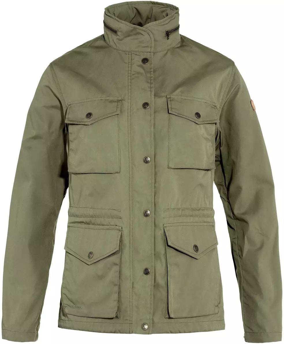 Räven W naisten takki on todella kestävä ulkoilutakki, joka on valmistettu kierrätettyä polyesteria ja luomupuuvillaa sisältävästä G-1000 -materiaalista. Räven Jacket lanseerattiin ensimmäisen kerran jo 1970-luvulla, ja se on siitä lähtien ollut ehdoton klassikko. Se on monipuolinen takki, joka sopii yhtä hyvin päivittäiseen käyttöön kuin ulkoiluretkille. Siinä on säädettävä HC Lite -materiaalista valmistettu huppu, joka voidaan kääriä ja taittaa kaulukseen jemmaan. Siinä on kaksisuuntainen vetoketju tuulilistan alla, yksi vetoketjullinen sisätasku sekä kaksi suurta napillista taskua, joiden alla vielä avotaskut. Kiristysnauhasäätö vyötäröllä ja helmassa. Räven Jacket on käytännöllinen mutta myös ikoninen tuote vuosiksi eteenpäin.