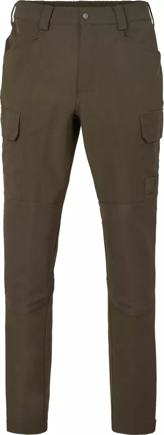 Housuissa on joustava vyötärön takaosa, joka mukautuu liikkeeseen ja lisää käyttömukavuutta pitkilläkin metsästyspäivillä. Etukiinnityksessä on farkkunappi ja sisäpuolella kontrastinappi lisäturvaa varten. Ylhäällä olevat avotaskut ja reisitaskut, joissa on hiljaiset magneettikiinnitteiset läpät, tarjoavat käytännöllistä ja äänetöntä säilytystilaa. Oikeassa reisitaskussa on patruunapidike, joka pitää panokset kätevästi saatavilla.