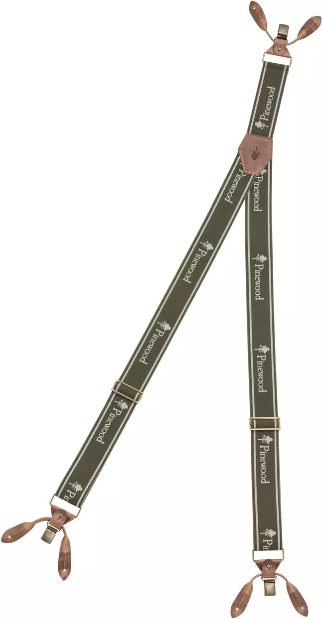 Henkselit Pinewood Logo Leveät olkaimet, joissa aidot nahka vahvikeet. Olkaimia voi käyttää sekä nappi- kuin klipsikiinnityksellä.
