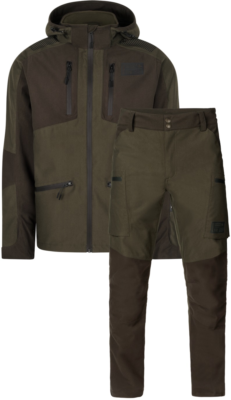 Chaser metsästyspuku varmistaa monipuolisen metsästyksen PFAS-vapaan Seetex®-kalvon ja teipattujen saumojen ansiosta. Takki on varustettu sivuradiotaskuilla, linssiliinalla, patruunataskulla ja liukumattomilla painatuksilla, jotka auttavat pitämään aseen hihnan paikallaan. Takista löytyy myös säädettävä huppu, vettä hylkivät vetoketjut ja tuuletus mukautuvuutta varten.