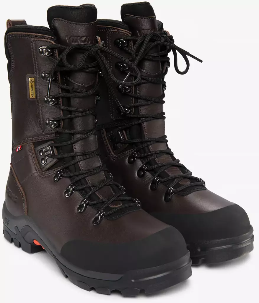 Viking Hunter GTX on nahkainen vaellus- ja metsästyskenkä, joka tarjoaa ylivoimaista tukea tuntikausien vaelluksiin erämaassa. Kengät on valmistettu kestävästä, laadukkaasta täysnahasta, ja ne on varustettu kevyellä GORE-TEX®-kalvolla, joka takaa vedenpitävyyden kosteissa olosuhteissa. Leveä lesti lisää käyttömukavuutta, ja kuminen varvassuoja parantaa kestävyyttä sekä suojaa iskuilta kivien ja juurien keskellä. UGC®-ulkopohja tarjoaa erinomaista pitoa vaihtelevassa maastossa.