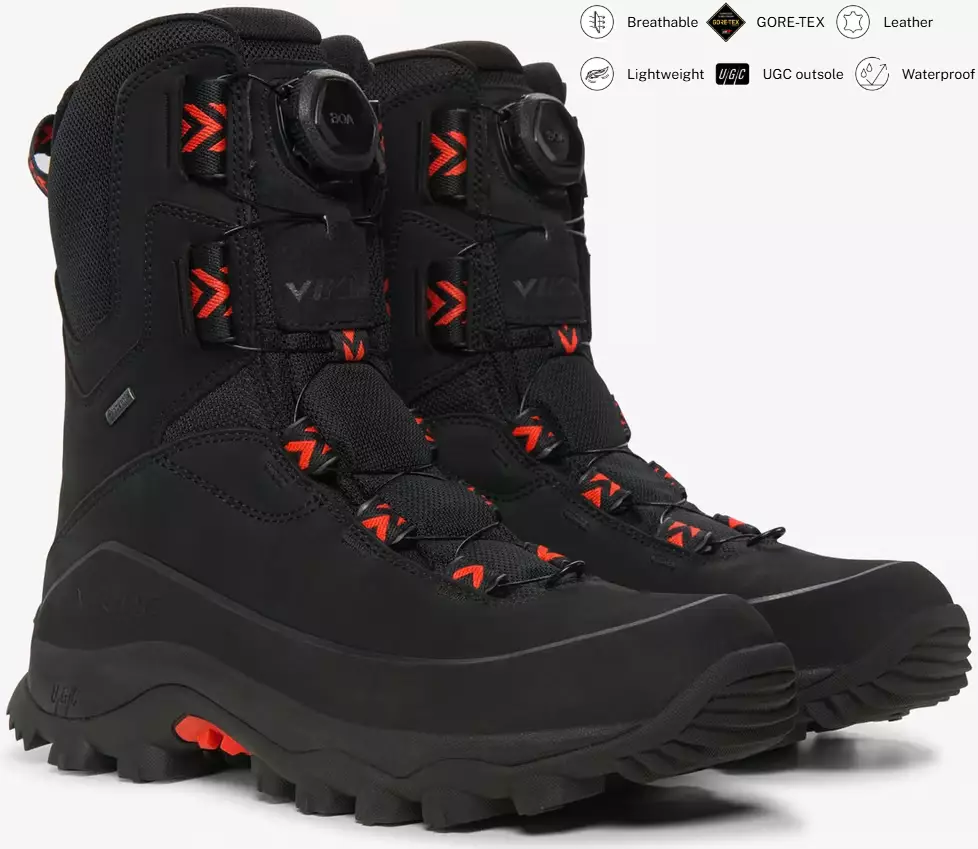 Viking Villrein High GTX BOA on huippuluokan metsästyskenkä, jossa uusi vedenpitävä ja hengittäva PFAS-vapaa GORE-TEX®-kalvo. Korkea varsi tarjoaa erinomaisen tuen, ja BOA® Fit System -kiinnitys mahdollistaa nopean, tarkan ja vaivattoman säädön myös kylmissä ja kosteissa olosuhteissa.