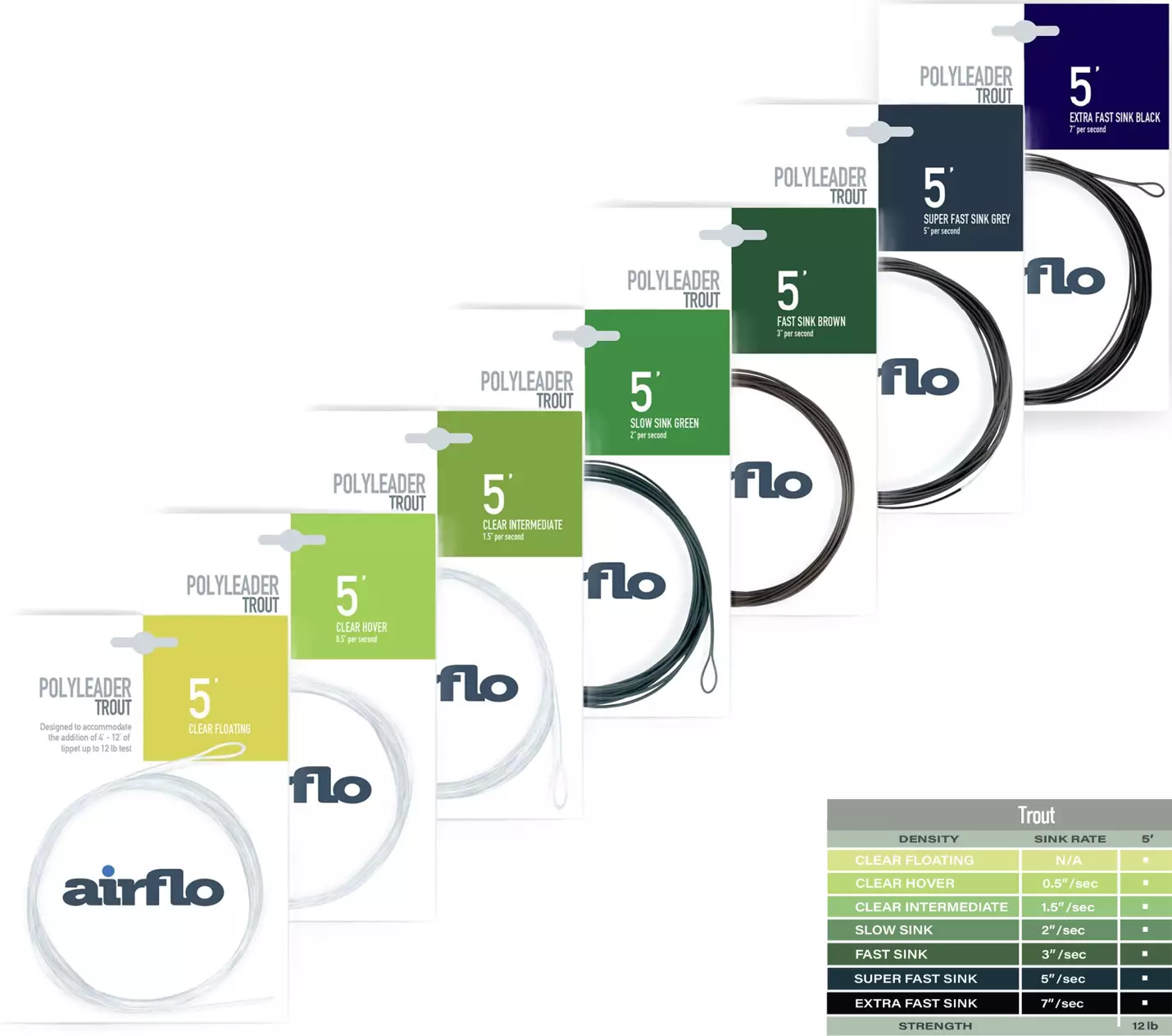 Airflo Polyleader 5' Trout on erinomainen valinta, kun haluat hallita perhon syvyyttä ja parantaa heittotarkkuutta kaikissa olosuhteissa.