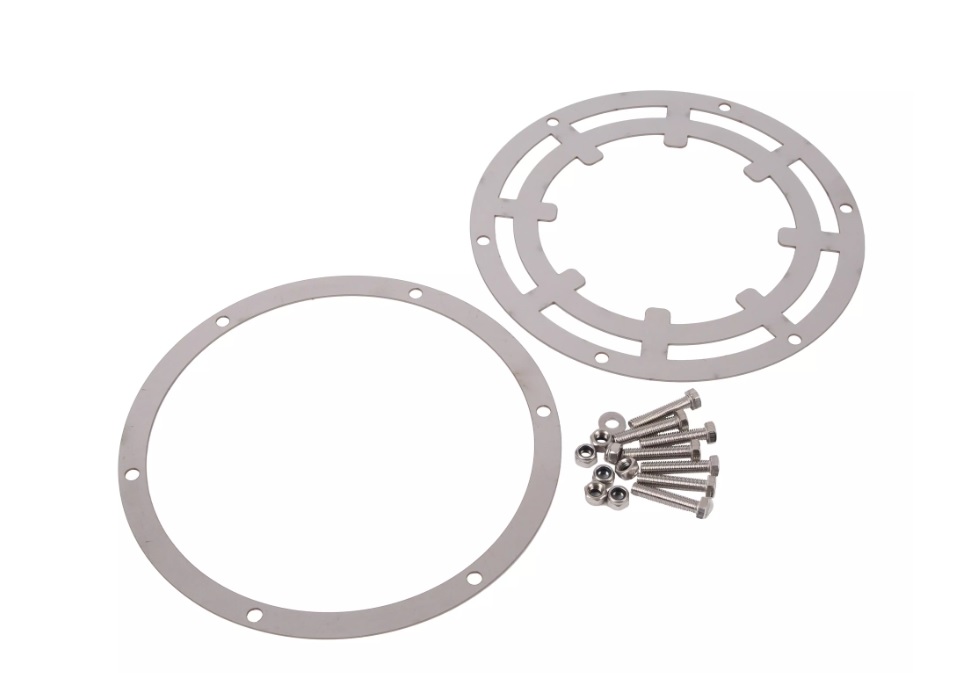 Ohje: Valitse sopiva paikka piipulle teltan katosta ja merkkaa se. Asenna renkaat molemmin puolin telttakangasta. Tiivistä tarvittaessa palamattomalla silikoonilla. Kiristä renkaat yhteen mukana tulevilla pulteilla niin, että kangas on välissä. Leikkaa lopuksi renkaan sisällä oleva kangas mattopuukolla pois. Voit myös leikata kankaan ennen kiristämistä, jolloin reunat jää renkaiden sisälle. Varmista, että teltta on palamatonta materiaalia.