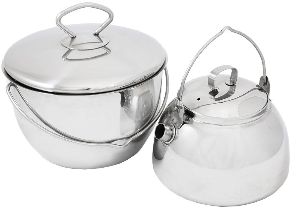 Kevyt setti menee pieneen tilaan. kahvipannu menee kattilan sisään.
