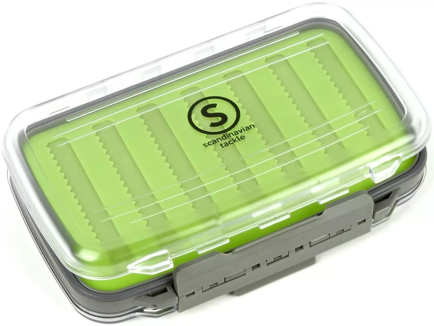 Scandinavian Tackle Double Silicon Flybox Vieherasia silikonipohjalla. Jämäkkä kestävä rakenne. Kaksipuoleinen. Mitat : 186x116x40mm