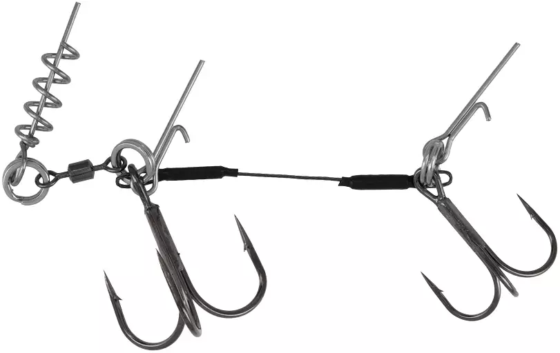 Screw-in -kiinnitysjärjestelmä tekee asennuksesta nopeaa ja varmaa, ja leikarit lisäävät liikkuvuutta sekä vähentävät siiman kiertymistä. Terävät kolmihaarakoukut parantavat näkyvyyttä ja tarjoavat erinomaisen tarttuvuuden.