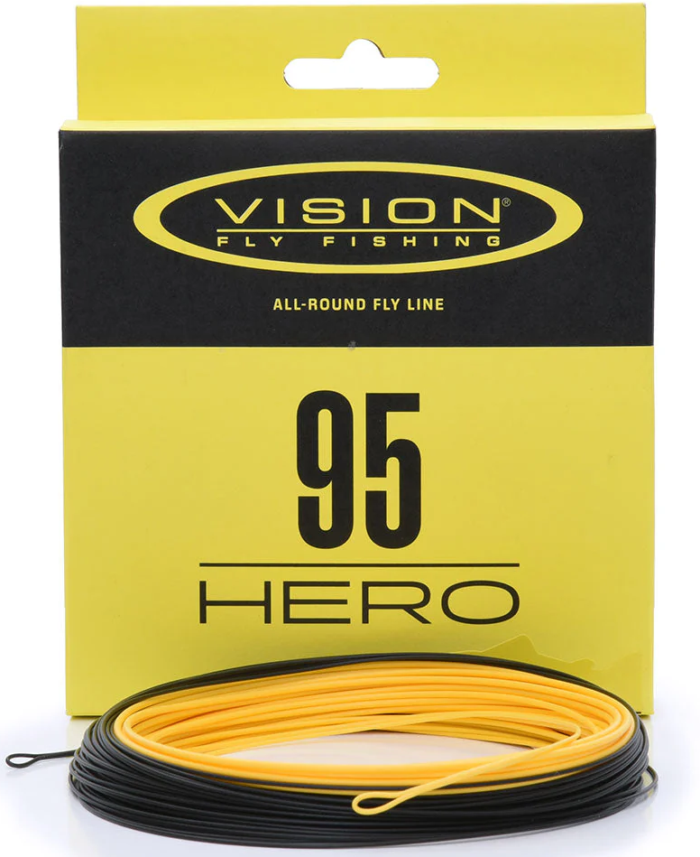 Hero-perhosiimasarja jatkaa kuuluisan Hero-vapasarjan tarinaa, joka on ollut yksi Visionin myydyimmistä vapasarjoista viime vuosina. Hero 95 -siimat ovat monipuolisia perhosiimoja, joissa on 9,5 metrin pituinen pää. Ne ovat helppoheittoisia ja voimakkaita siimoja, mikä tekee niistä ihanteellisia sekä aloittelijoille että kokeneille kalastajille. Keltainen pää on erittäin näkyvä ja tarjoaa hyvän kontrastin tummalle juoksevalle siimalle. Molemmissa päissä on lenkit helppoa vaivatonta käyttöä varten.