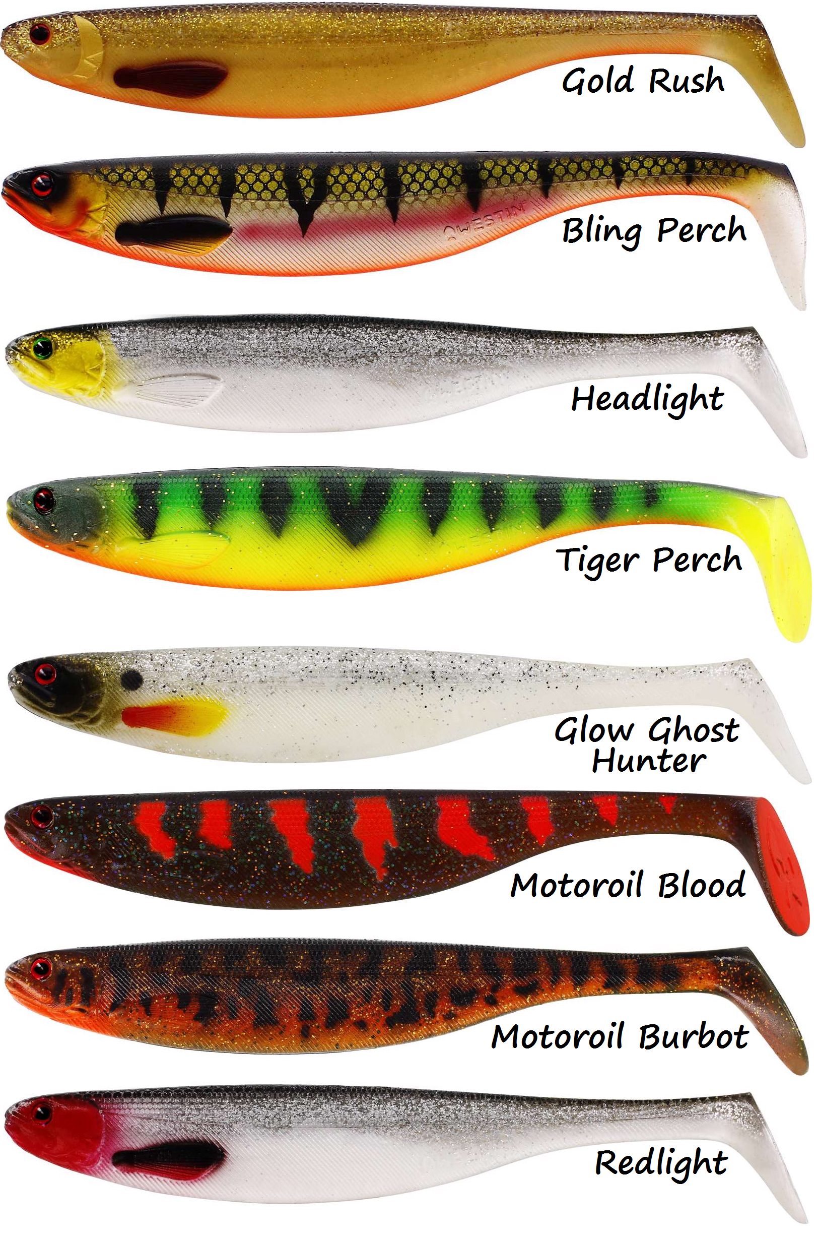 Tämä upea isokokoinen kaveri asettaa muut shadit varjoonsa. Niin täydellisen yksityiskohtainen se on kaikin tavoin! Syvä vartalo, leveä pyrstö ja herkkä potku luovat rullaavan, vatsaa vilkuttavan uintitoiminnan, joka saa suurrimmat saaliskalat iskemään. Se imitoi lievästi haavoittunutta, paniikissa olevaa kalaa.