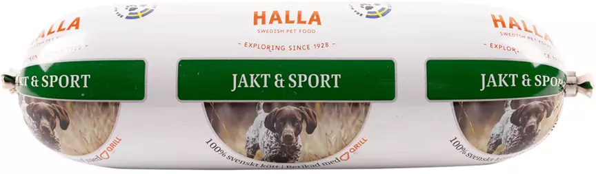 Halla Jakt & Sport on maukas ja ravinteikas täysravinto, joka on suunniteltu erityisesti aktiivisille ja työskenteleville aikuisille koirille. Ruoka valmistetaan Ruotsissa huolella valituista raaka-aineista – lihasta, sisäelimistä, vihanneksista ja kylmäpuristetusta rypsiöljystä.