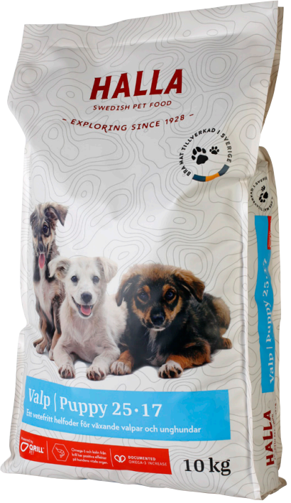Halla Valp 25-17 10kg, penturuoka Suosittu Halla Valp on saanut uuden pakkauksen ja uuden koostumuksen!Erittäin laadukas, vehnätön täysravinto pennuille, nuorille kasvaville koirille sekä... Lue lisää