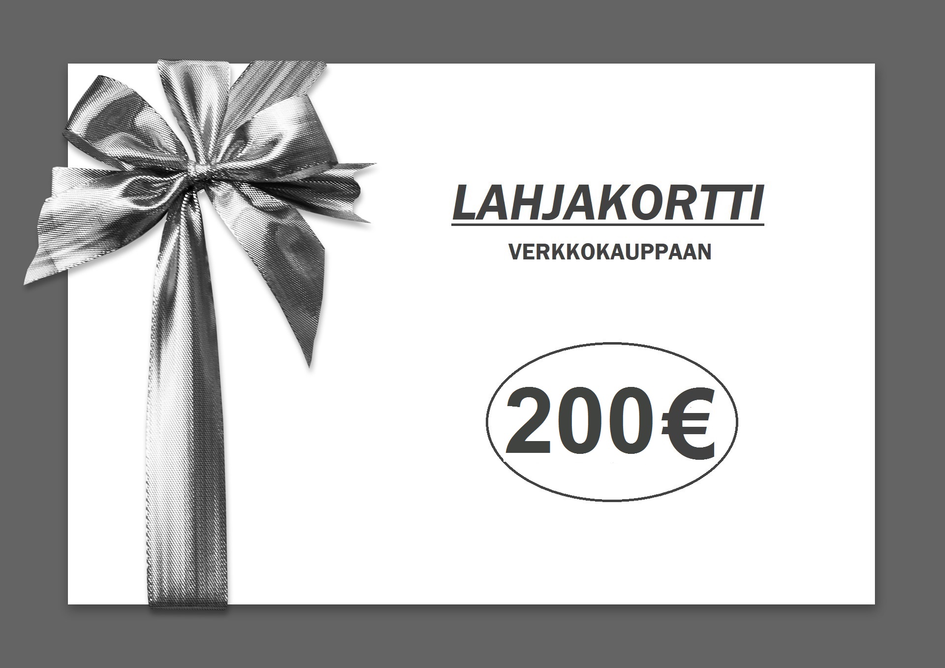 Verkkokaupan lahjakortti, verkkokauppa tilauksiin. Lähetämme sähköpostiisi koodin, joka käy verkkokaupassamme. Koodi kirjoitetaan KAMPPANJA- TAI ALENNUSKOODI kenttään. Lähetämme tilaamasi koodin välittömästi tilauksen saatuamme liikkeen aukiolo aikana (klo9:00-17:00) Alennus on kertakäyttöinen ja jos lahjakortin koko summa ei täyty tilauksella, jäljellä olevaa summaa ei hyvitetä jälkikäteen. Lahjakortti on 12kk voimassa ostopäivästä Huom! Tämä ei ole fyysinen lahjakortti, joten toimitustavaksi valitse nouto myymälästä.