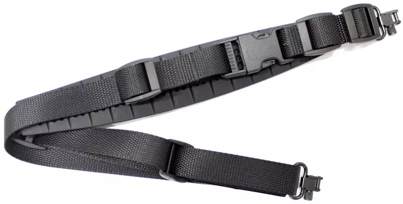 - Kiristettävä rakenne: hihna pysyy tiiviisti aseen runkoa vasten