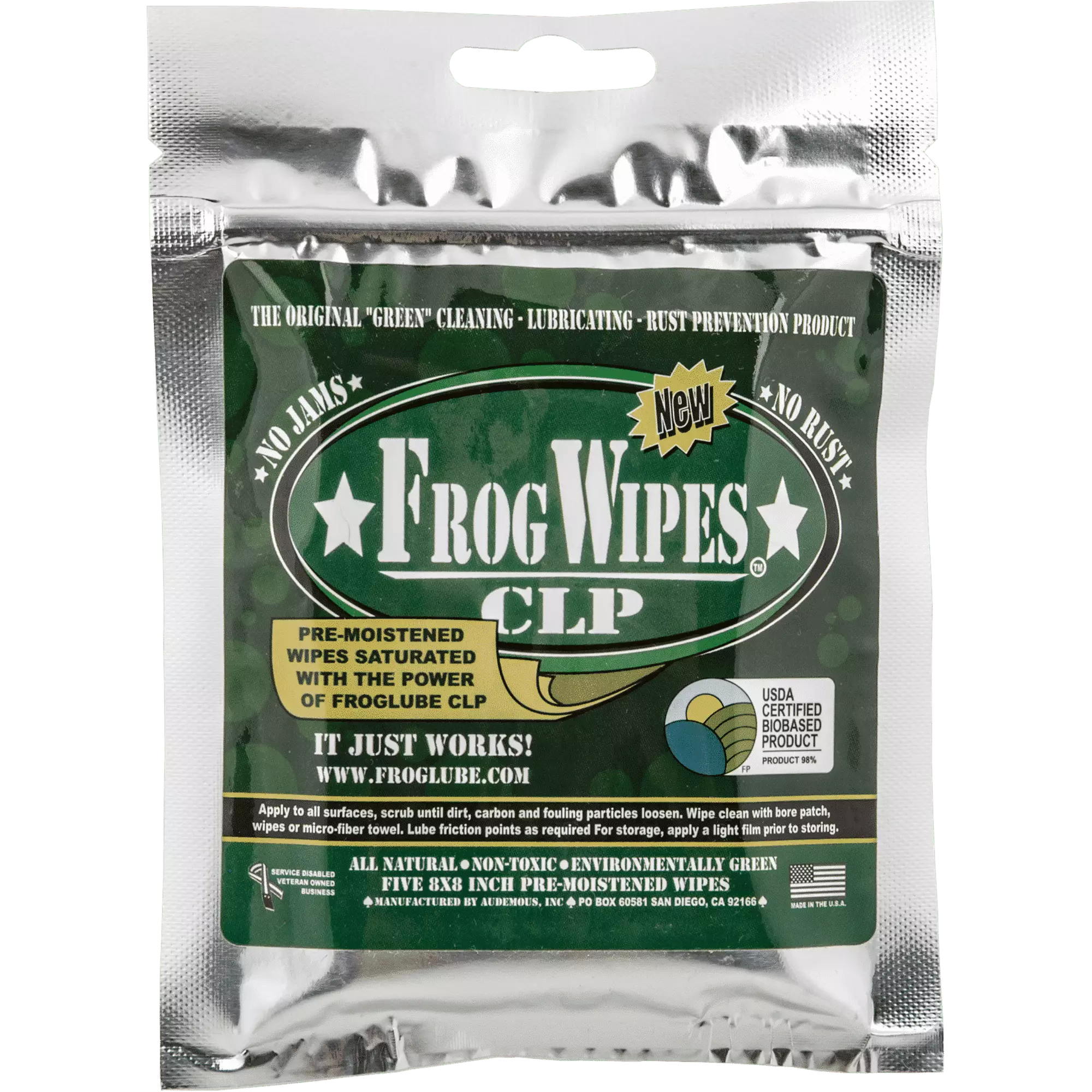FrogLube CLP Wipes puhdistusliinoilla voitelet aseesi helposti ja turvallisesti heti käytön jälkeen tai huollon yhteydessä. Yhtä liinaa voit käyttää useamman kerran.
