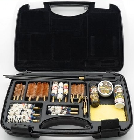 Tämä tyylikkäässä salkussa toimitettava 32-osainen puhdistussarja sisältää kaiken tarvittavan aseen puhdistukseen useimmille kalipereille.