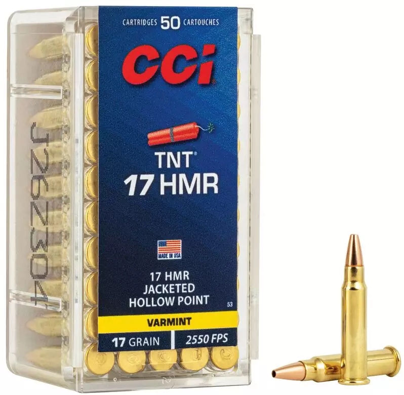 CCI® TNT® -patruuna yhdistää kilpailutason tarkkuuden ja maksimaalisen tehon pienriistan ja tuholaisten torjuntaan. .17 HMR -lataus tarjoaa tasaisen, suoran lentoradan ja luodin räjähtävän laajenemisen osumassa. Luotettavat CCI®-nallit ja hylsyt varmistavat varman toiminnan laukauksesta toiseen.
