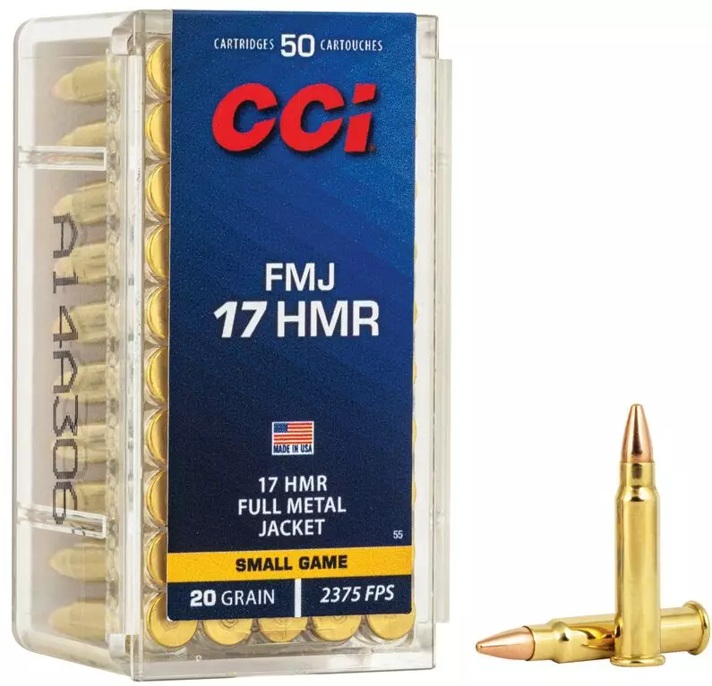CCI .17 HMR 20 gr FMJ – 50 kpl Säästä lihaa ja vähennä hävikkiä CCI® Small Game FMJ -patruunoilla. Tämä täysvaippaluoti läpäisee siististi jättäen puhtaat reiät ilman laajenemista... Lue lisää
