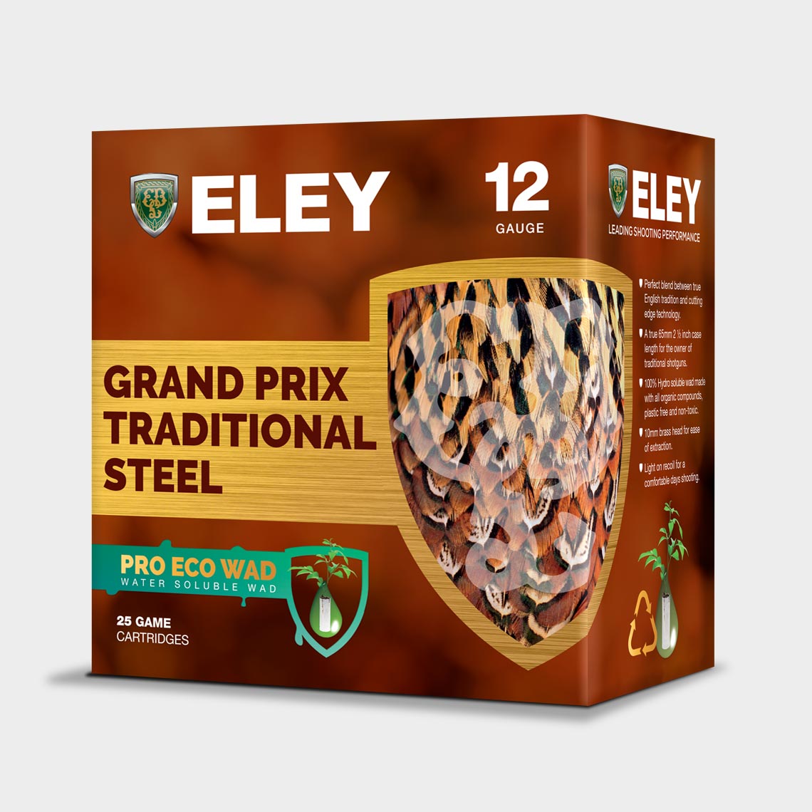 Tämä on Eley Hawkin uusin, markkinoiden johtava innovaatio, joka yhdistää perinteet huipputeknologian. Eley Hawkin yksinoikeudella täysin biohajoavalla Pro Eco välitulpalla varustettu Grand Prix Traditional Steel Pro Eco mahdollistaa teräksen ampumisen perinteisillä, savuttomalla ruudilla (nitro leima) testatuilla aseilla.