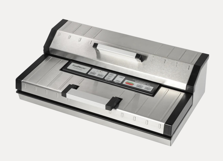 FoodMaster Elite vakuumikone on suunniteltu ammattikäyttöön. Pakkaamalla elintarvikkeet vakuumipussiin, voit pidentää niiden säilyvyyttä jopa viisinkertaiseksi. Suuri pakkausteho (-0.9 bar) ja tuplasaumaus takaavat onnistuneen pakkaamisen lähes kaikille elintarvikkeille. Tehokas 200W moottori tekee pakkaamisesta nopeaa, eikä kone hyydy isompiakaan määriä pakatessa. Koneen runko on erittäin lujaa ruostumatonta terästä. Voit säätää pakkaus- ja saumaustehon elintarvikkeelle sopivaksi tai käyttää manuaalipakkausta. Elite -mallissa on säilytyslokero jopa 40cm leveille vakuumirullille ja se on varustettu myös pussileikkurilla. Pussien- ja rullien lisäksi laitteen kanssa on mahdollista käyttää tyhjiö- tai marinointiastioita. Tähän koneeseen sopivat ilmakanavoidut vakuumipussit.
