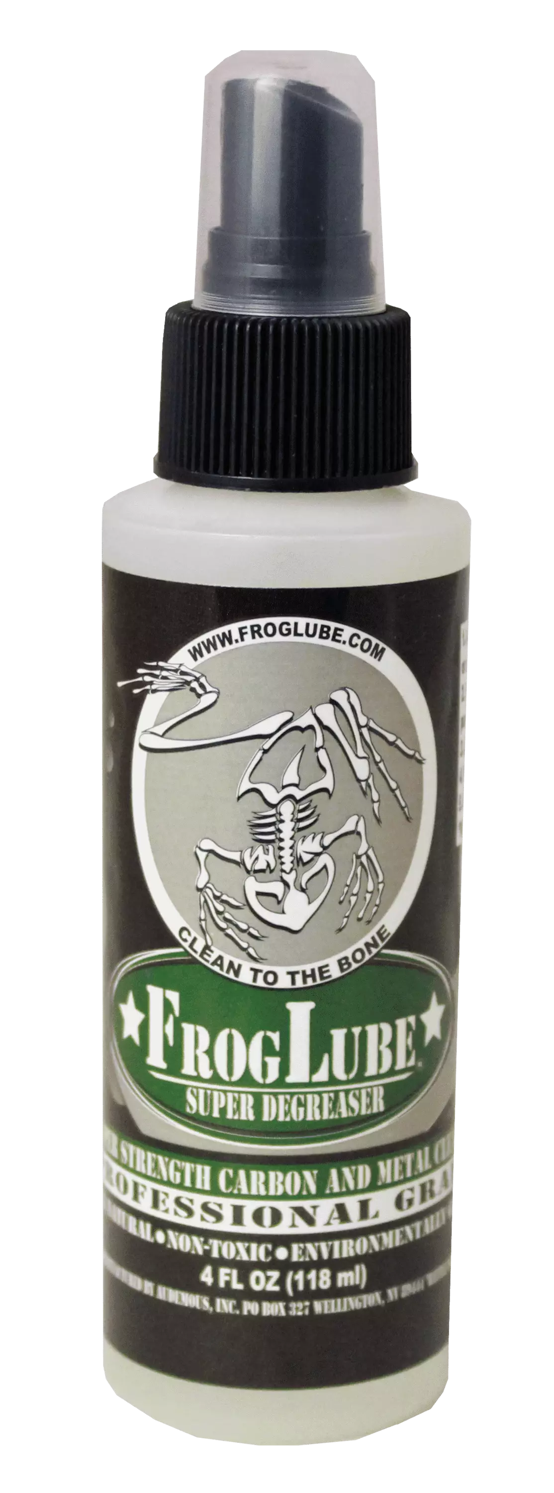 FrogLube Super Degreaser on erittäin tehokas puhdistusaine, joka on suunniteltu poistamaan pinttynyt lika, rasva sekä ruutijäämät nopeasti ja vaivattomasti. Se toimii erinomaisesti esipuhdistusaineena ennen voiteluaineen levittämistä, varmistaen että käsiteltävät pinnat ovat täysin puhtaat ja valmiit optimaaliseen voiteluun.