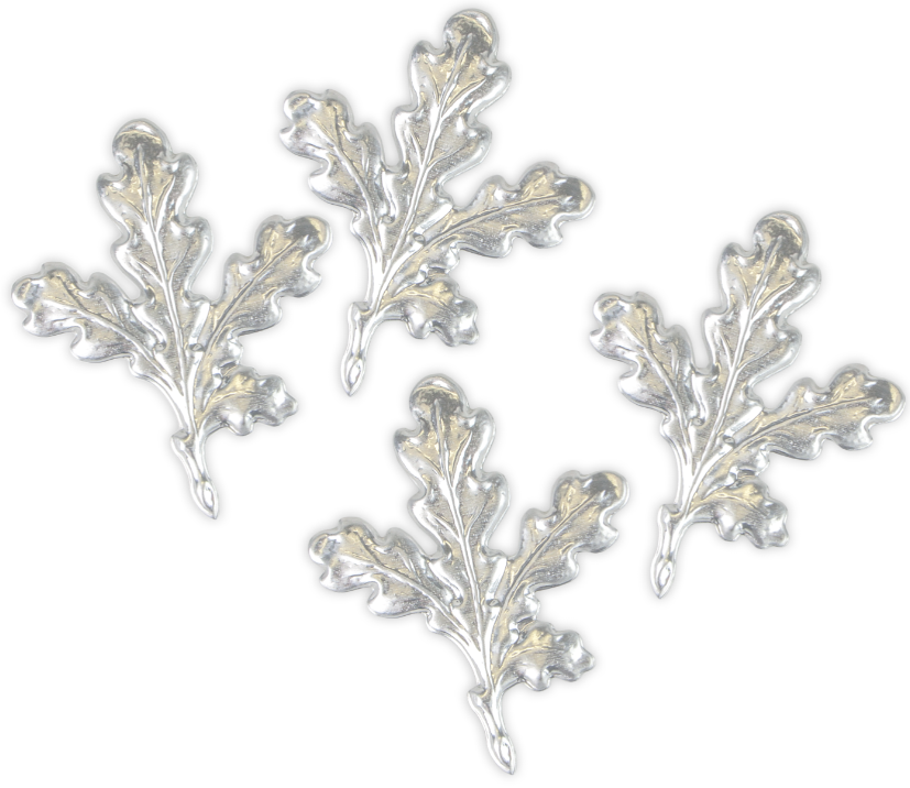 Tyylikkäät hopeiset tammenlehdet joill avoi kiinnittää esim. villisian hampaat taustalevyyn.