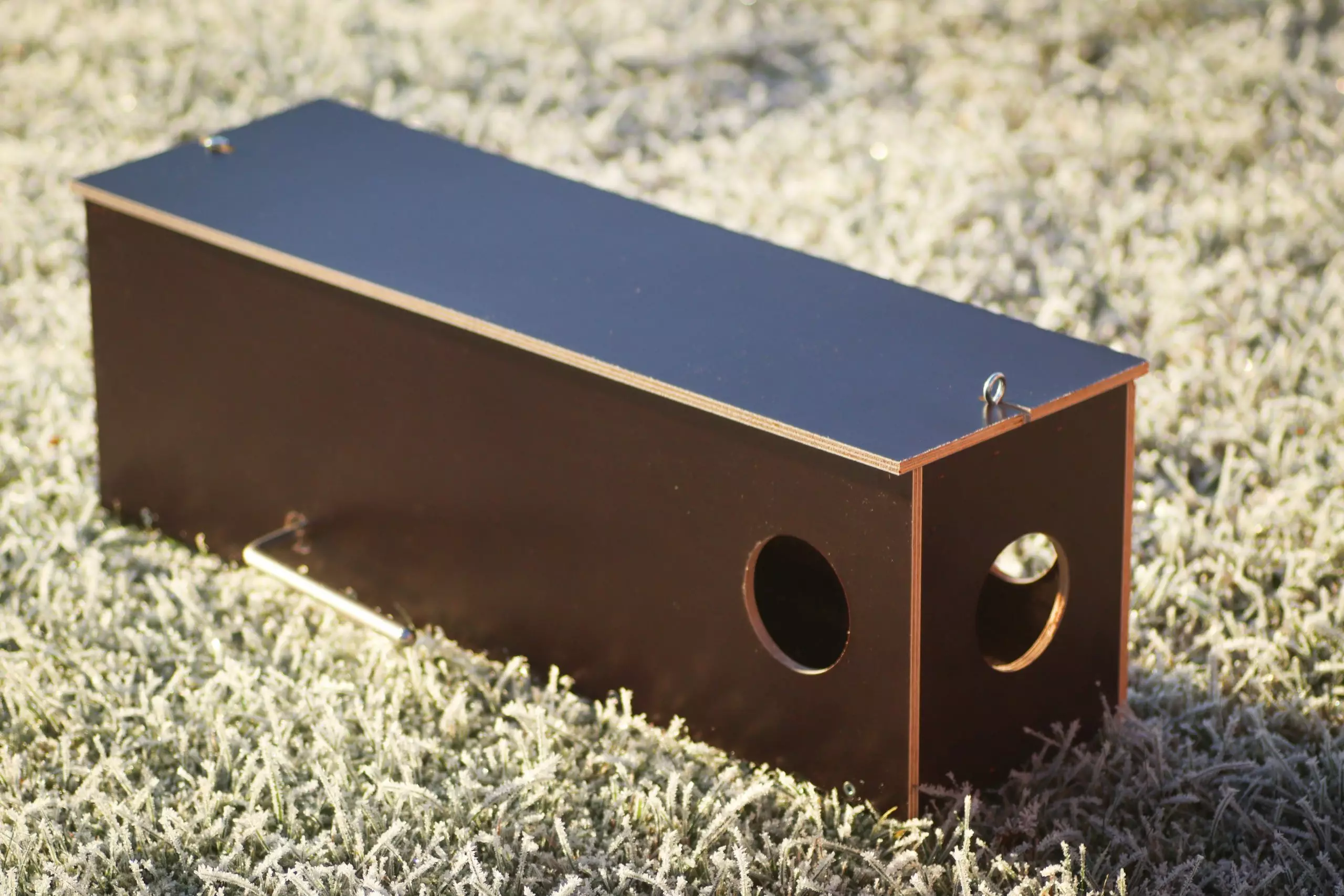 Laatikkorauta on erinomainen valinta ammattimaiseen pienpetopyyntiin, maatiloille, mökeille, rantoihin ja pihapiireihin, joissa tarvitaan luotettava ja pitkäikäinen minkkiloukku.