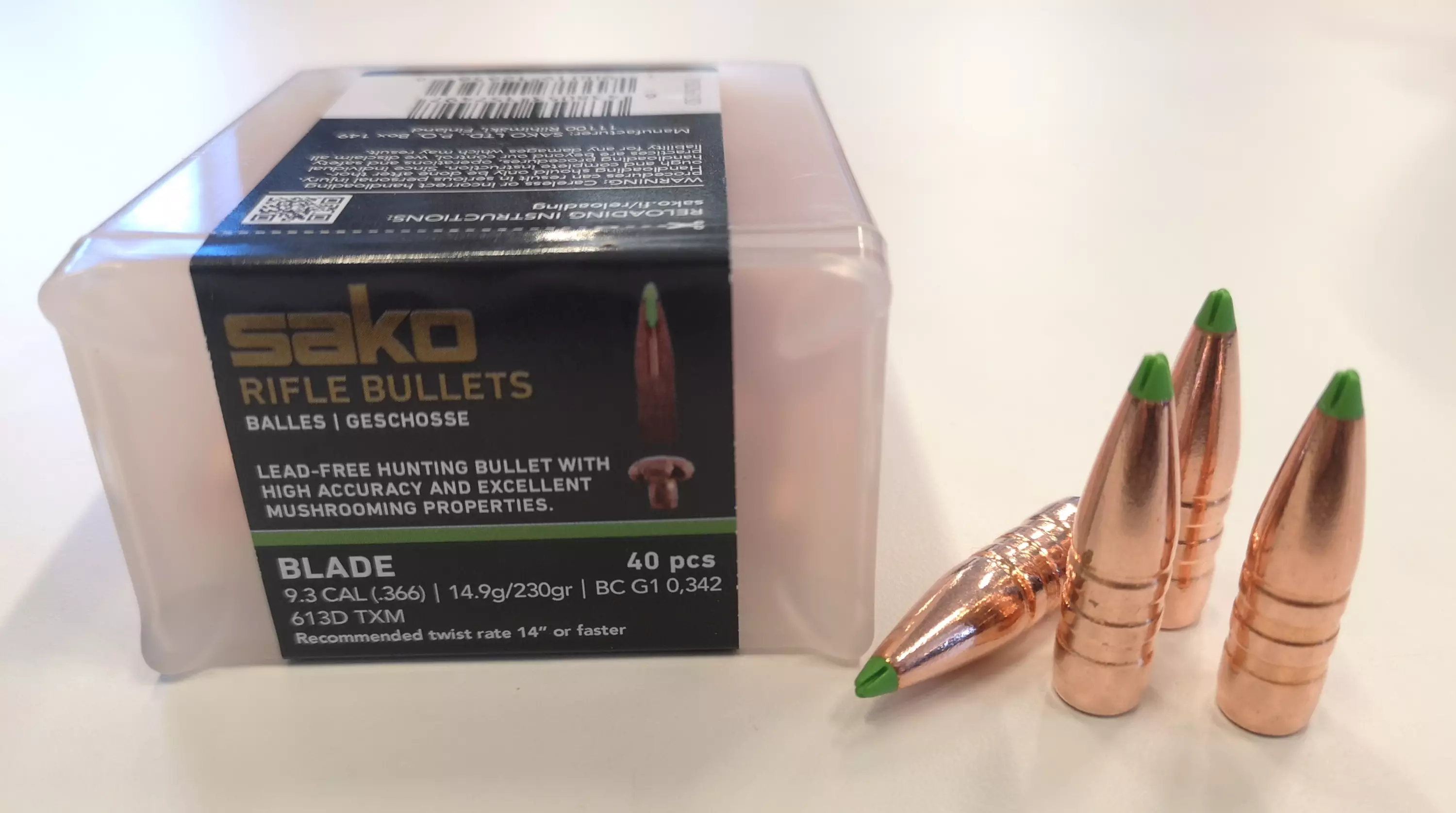 Sako Powerhead Blade 9,3mm 14,9g/230gr Sakon lyijytön kupari metsästysluoti. 14,9g/230gr 9,3mm/.366" 40kpl/pkt 613D TXM Luoti BC G1 0,342 Suositeltu rihlannousu 14" tai nopeampi... Lue lisää