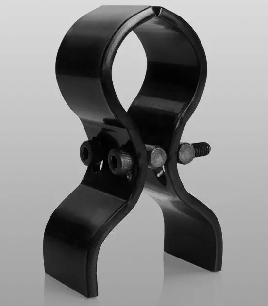 Yksinkertainen universaali asekiinnike. Sopii rakenteeltaan asennettavaksi melkein kaikkiin asetyyppeihin, myös kaksipiippuisiin haulikoihin.
