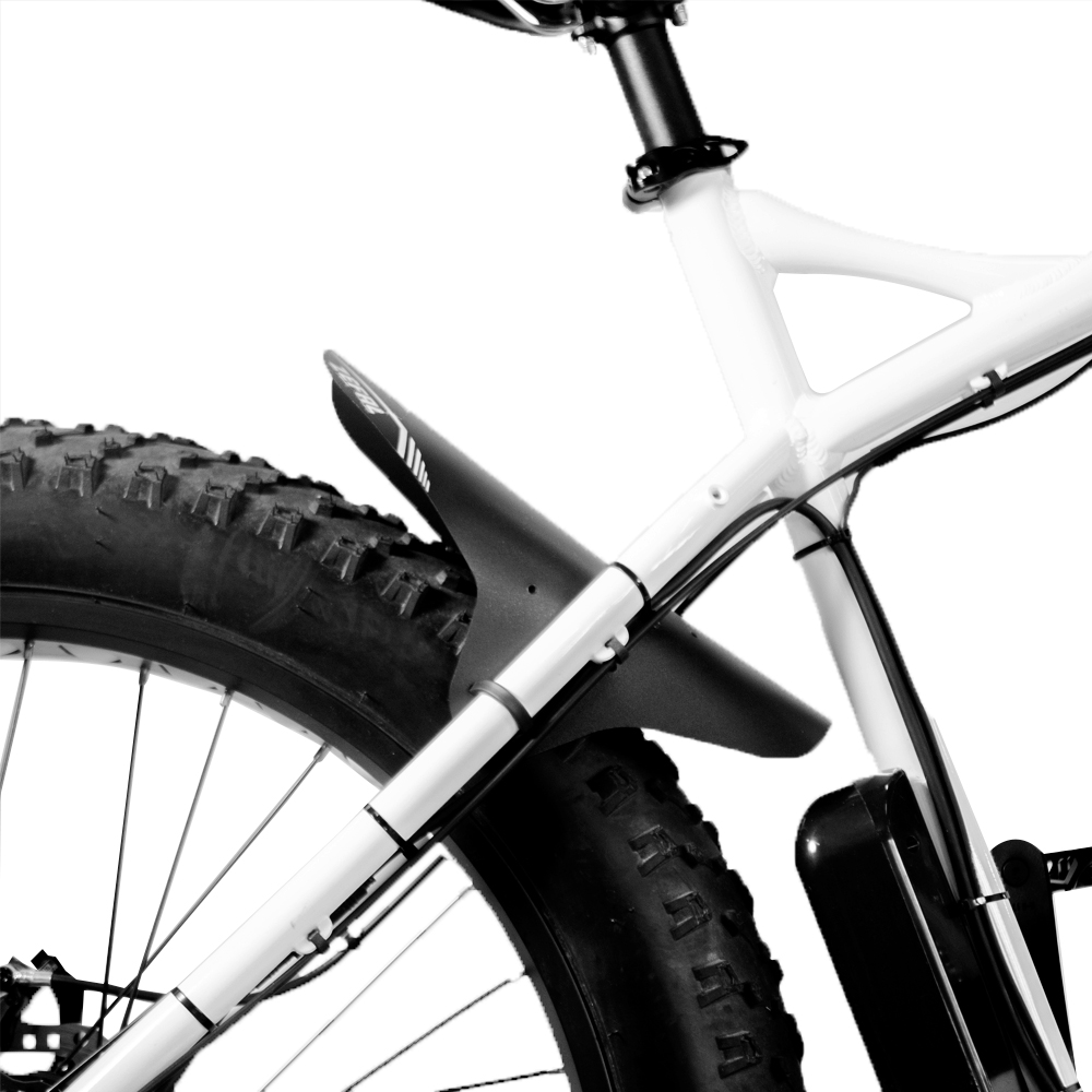 Takalokasuojan jatkeeksi lisäsuojaksi. Suojaa paremmin takapyörän roiskeilta. Asennetaan nippusiteillä runkoon kiinni.