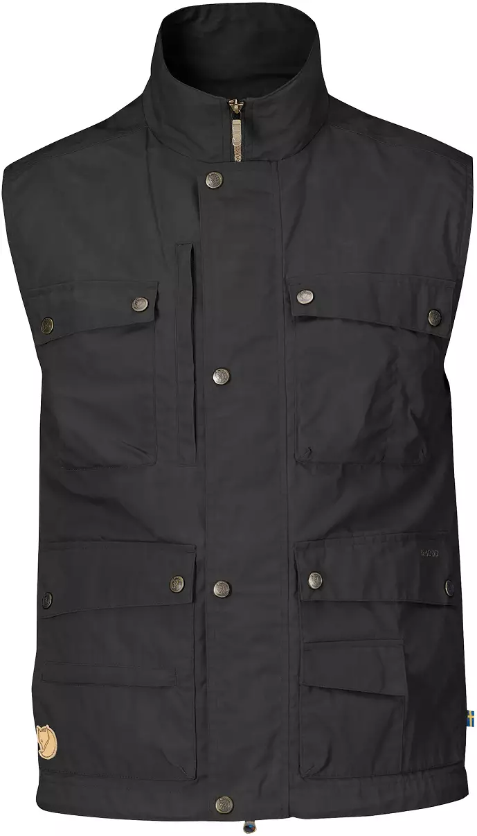 Fjällräven Reporter Lite Vest M, liivi 030 - Dark Grey Käytännöllinen liivi G-1000 Lite -kankaasta verkkovuorella. Klassinen "reportterimalli". Paljon käteviä taskuja, muun muassa käsitaskut... Lue lisää