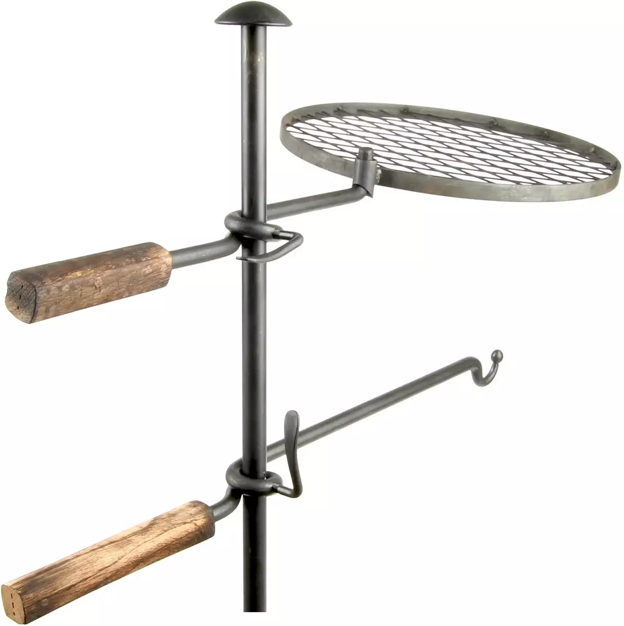 Teline on nopea koota nuotion viereen, ja mukana tuleva ritilä mahdollistaa makkaroiden, pihvien ja muiden ruokien paistamisen. Kahvipannukoukun avulla valmistat helposti myös pannukahvit avotulella.