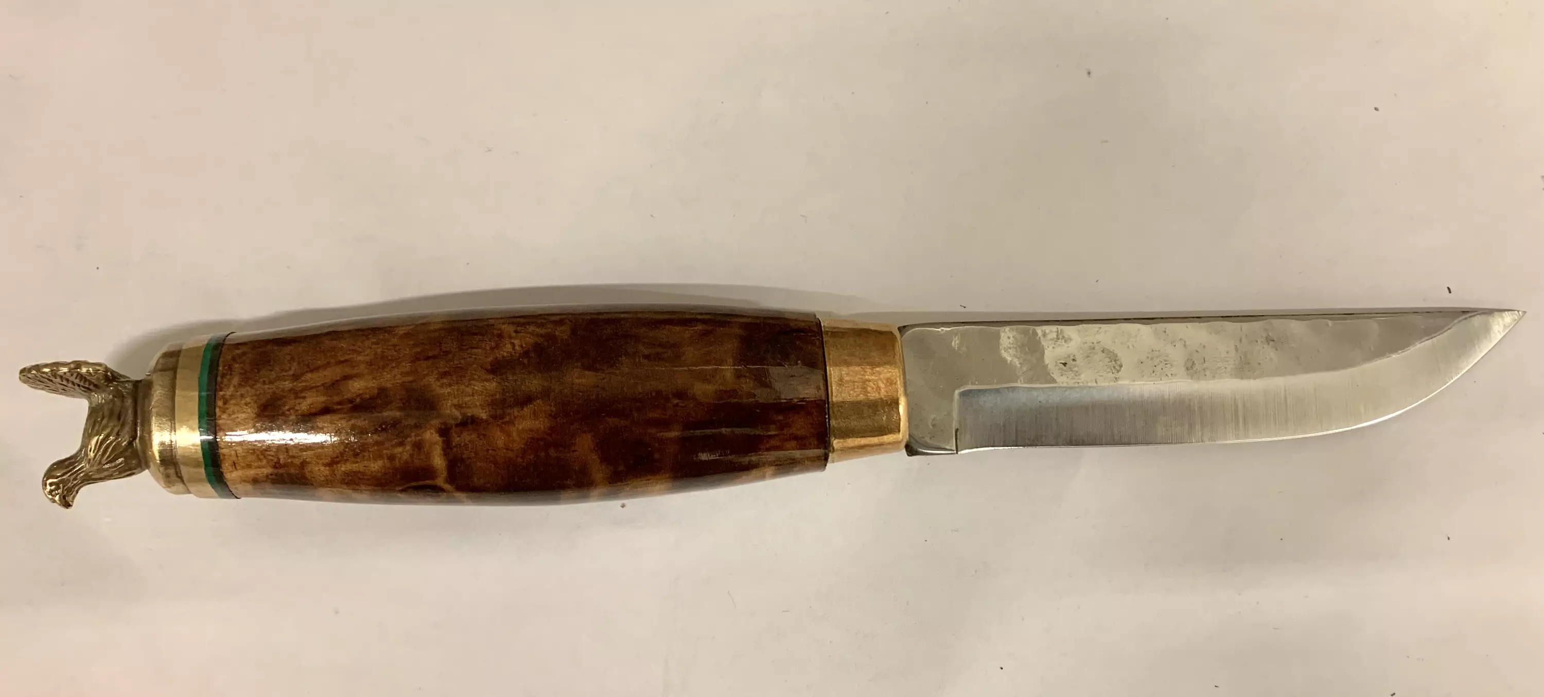 Kauhavalaisen P. Kivimäen käsin tehty tyylikäs metsopuukko. Puukko on käyttöpuukko ei vain koriste, sopii silti hyvin lahjaksi.Kahva visakoivua