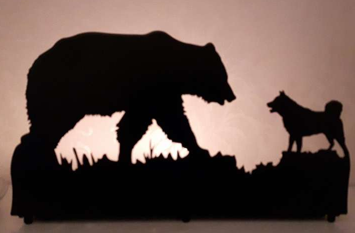 Tuikkuteline, Jämpti ja karhu Erittäin hieno tuikkuteline kolmelle tuikkukynttilälle. Tuikkuteline on valmistettu 1mm teräksestä ja pulverimaalattu mustalla värillä. Teline ei lämmitä... Lue lisää