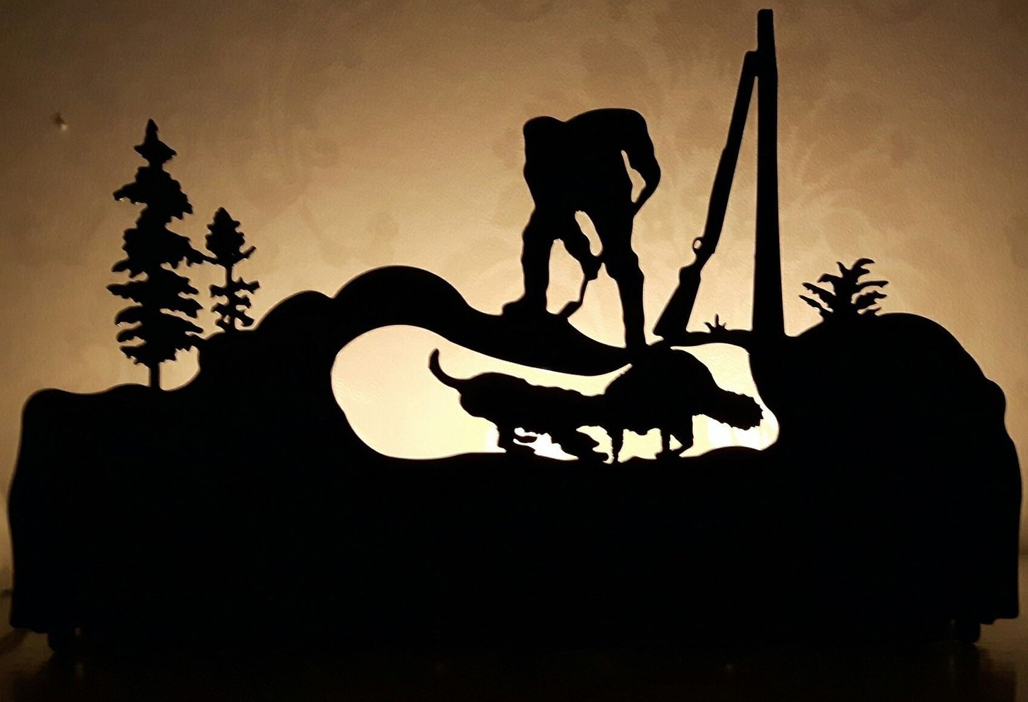 Tuikkuteline, Saksan metsästysterrieri ja supi Erittäin hieno tuikkuteline kolmelle tuikkukynttilälle. Tuikkuteline on valmistettu 1mm teräksestä ja pulverimaalattu mustalla värillä. Teline ei... Lue lisää